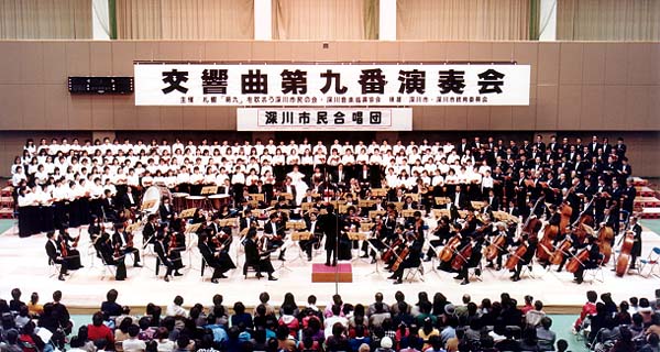 深川で最初の「第九」は22年前に札響の演奏で総合体育館で開催されました。私は本来はホルン吹きですが、もちろんこの時は合唱で参加しました。ベートーベンは「第九」の合唱に市民参加を想定していたとも言われ、このような市民参加の「第九」はある意味本来の形かもしれません。