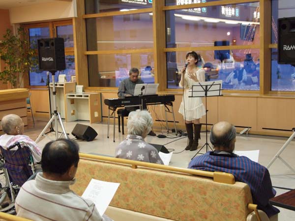 市立病院では年2回ペースで入院や通院患者の方々へロビーコンサートを開催しています。今回は深川出身で現在札幌に在住の「とみながまさえ」さんのジャズボーカルと旭川在住の「梅村恒寿」さんのピアノです。ちょっと早めの歌のクリスマスプレゼントでした。