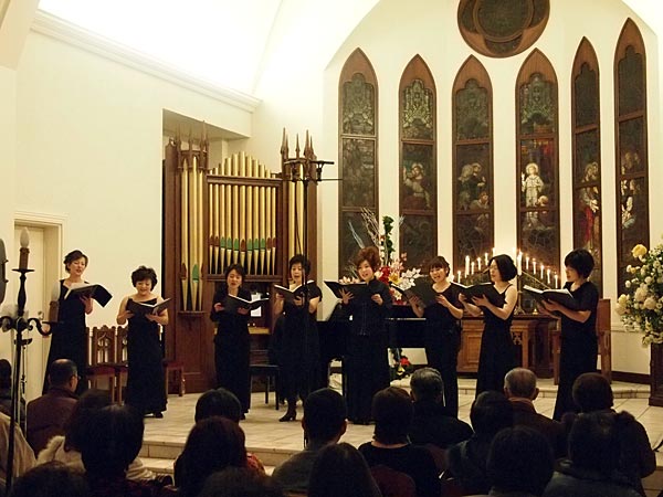 ここの聖歌隊は、リーダーの声楽家菊入三恵さんの艶やかな歌声に先導され、調和の取れたハーモニーを聞かせてくれます。しかし私たちがそれを聞けるのは、このクリスマスコンサートしかないので、この時期しか聞けないクリスマスソングと合わせて貴重な機会です。